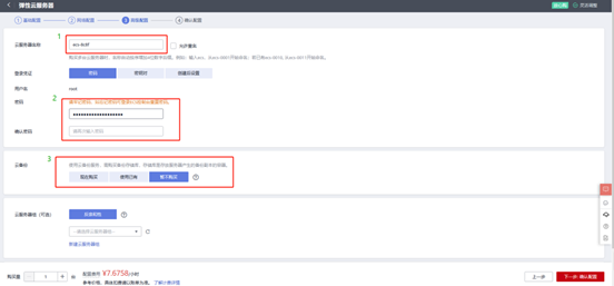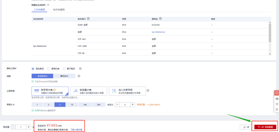 1)此时已完成服务器的基础配置,接下来则开始进行网络配置。网络配置可以选择适合的计费方式,以及需要的带宽大小