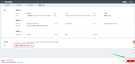 检查选择配置是否正确,可选择购买数量。在协议处勾选✔,并点击立即购买