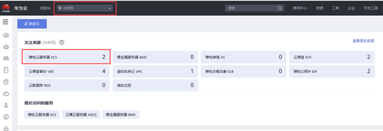 2.在“控制台”右边的定位中选择之前选购的云服务器区域,否则会找不到你的服务器喔~