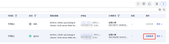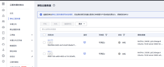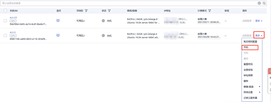 4.大家可以看到此时服务器处于关机状态,使用时在右方“更多”处选择“开机”