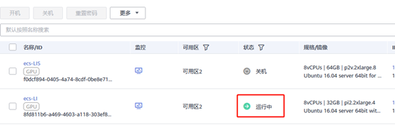5.稍等片刻,待状态处显示“运行中”则说明开机完成