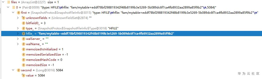 发现这里是包含父Region以及分裂后的2个子Region的HFile信息,且关联的子Region里的HFile也是分裂后真实存在的