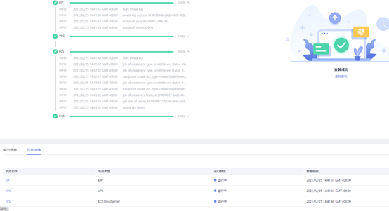 d. 安装成功后,根据“节点详情”完成系统访问和功能验证
