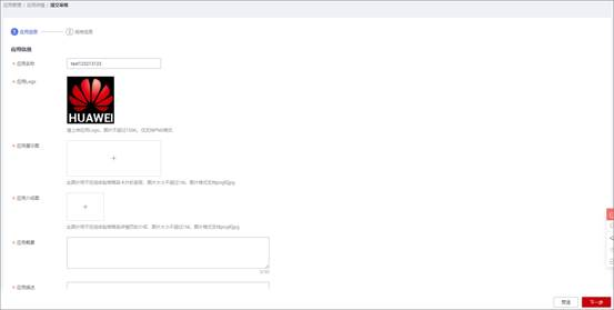 - 填写应用名称、行业、场景及描述信息,完成应用(商品)创建