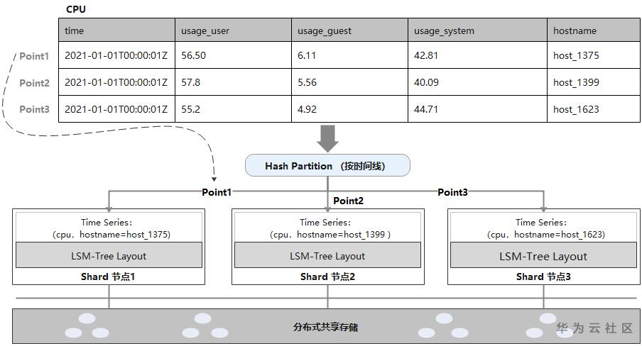 首先,时序数据按照时间线做Hash Partition,利用所有节点并行写入,充分发挥集群优势。