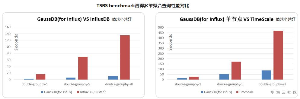相同节点规格,GaussDB(for Influx)的聚合查询性能是InfluxDB Enterprise的10倍,是Timescale的2到5倍。