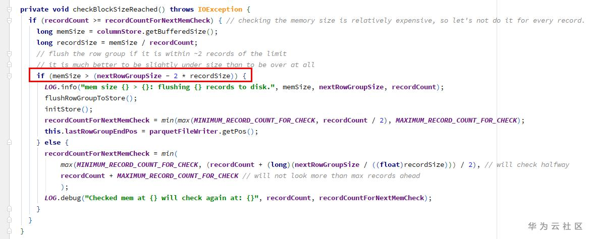 检查block size,是否需要flushRowGroupToStore - 检查点2