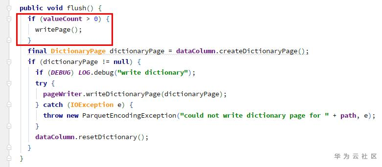 因为未调用过writePage,所以此处的totalValueCount一直为0。