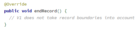 而对比老版本1.8.3中,ColumnWriteStoreV1.endRecord为空函数。