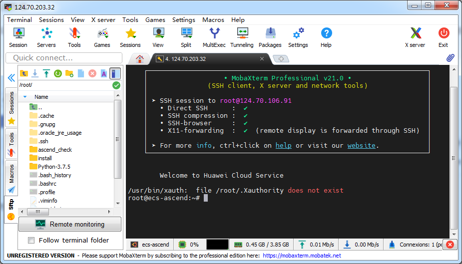 第二步:使用mobax登录到ECS远程服务器