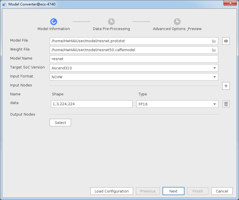 下载完成后,回到MindStudio,选择菜单栏【Ascend】-【Model Conver】进行模型转换,设置如下图