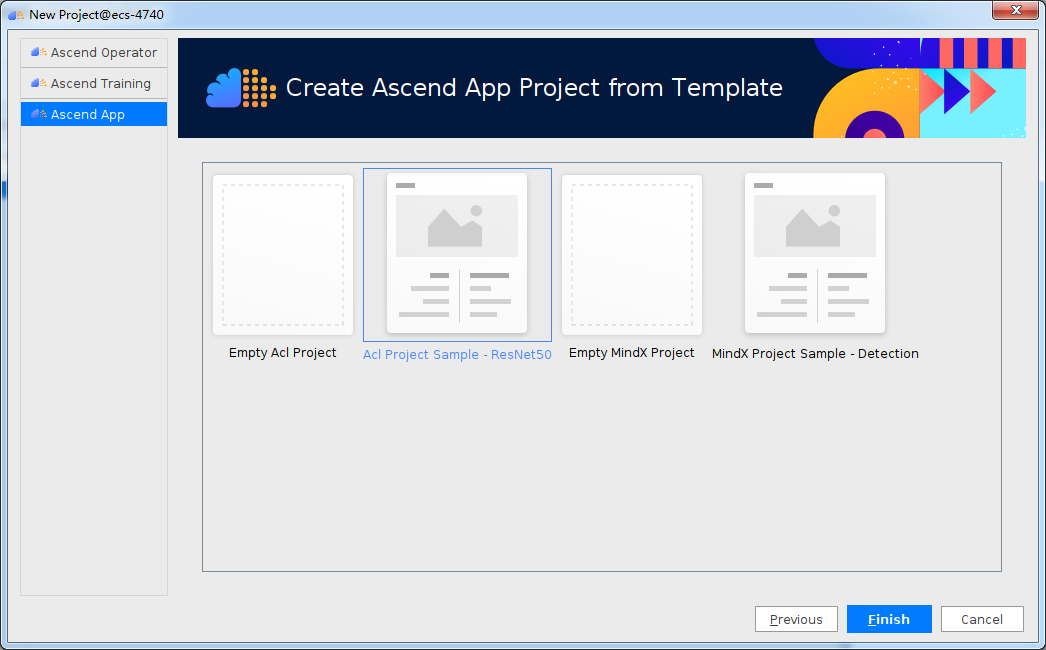 这里选择【Asecend App】然后下一步,跟着图选Resnet50,然后完成