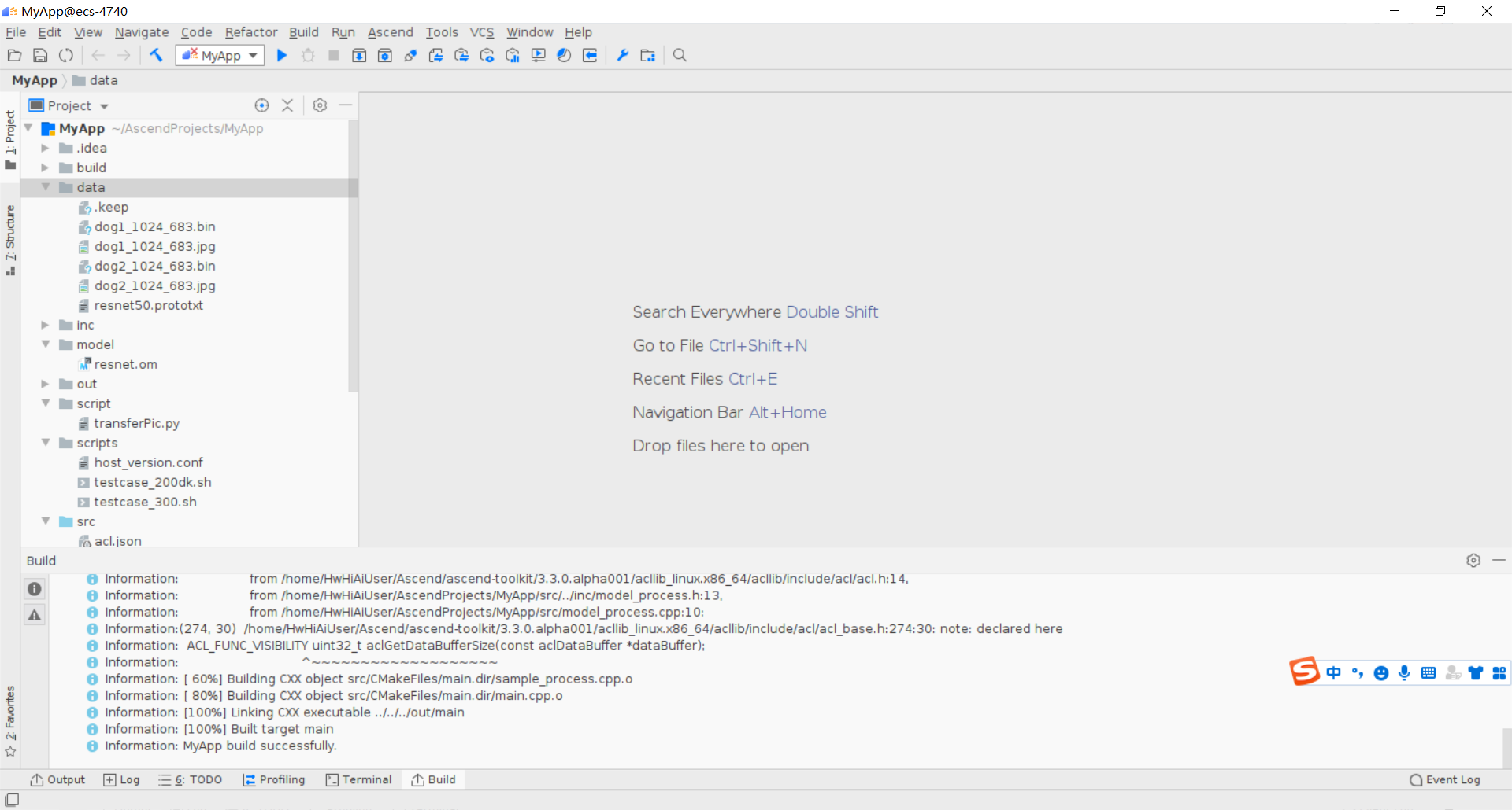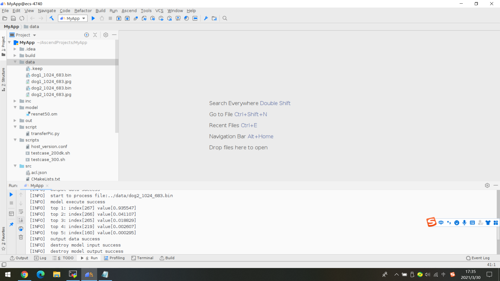 打开MindStudio终端,下载推理所需的图片并且执行图片处理程序: