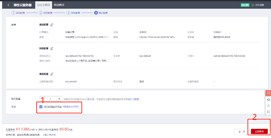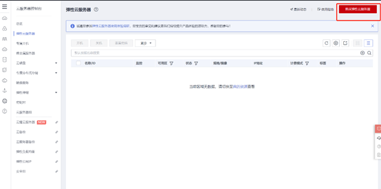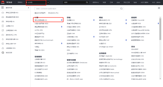 登录à控制面板,购买一个ECS(Elastic Cloud Server)中文意思是 弹性云服务器,北京四的地域就行。
