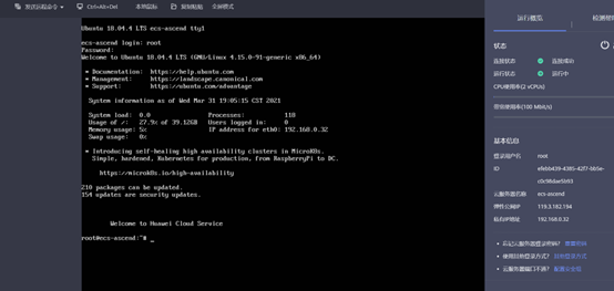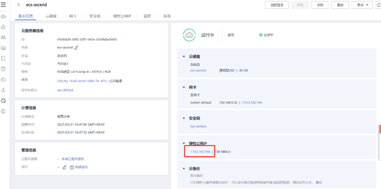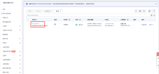 上述流程完成后,等待一段时间,系统创建完成后,在ECS菜单中能够看到自己的服务器了
