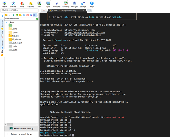 在接下来的使用过程中,我们不能使用root账户进行操作,需要使用华为的特定账户:HwHiAiUser 这个账户