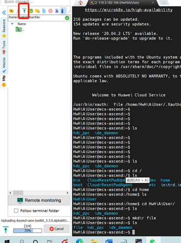 连接完成后,我们可以把第二步下载的软件,上传到服务器