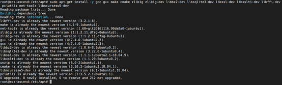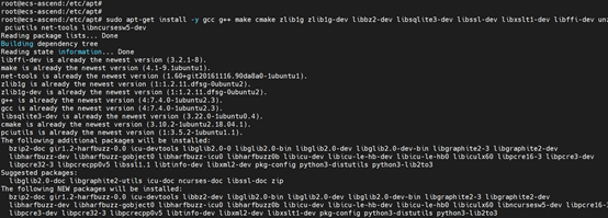 安装指令: sudo apt-get install -y gcc g++ make cmake zlib1g zlib1g-dev libbz2-dev libsqlite3-dev libssl-dev libxslt1-dev libffi-dev unzip pciutils net-tools libncursesw5-dev