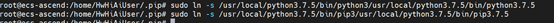 sudo ln -s /usr/local/python3.7.5/bin/pip3/usr/local/python3.7.5/bin/pip3.7.5
