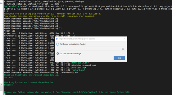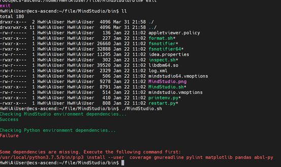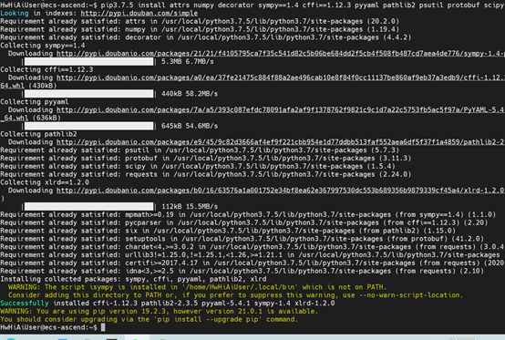 下一步,我们开始安装python的依赖,这里特别注意需要,退回到HwHiAiUser账户的权限下进行