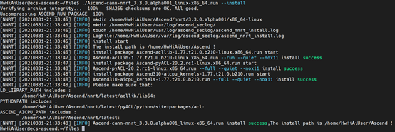 执行指令:./Ascend-cann-nnrt_3.3.0.alpha001_linux-x86_64.run –install