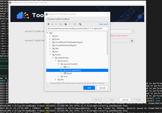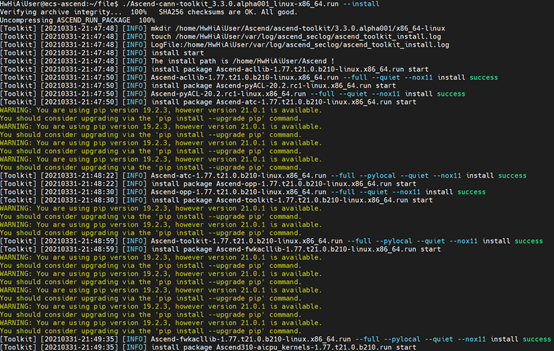 执行指令:./ Ascend-cann-toolkit_3.3.0.alpha001_linux-x86_64.run –install