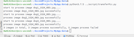 图片预处理,在terminal栏中,执行:python3.7.5 ../script/transferPic.py