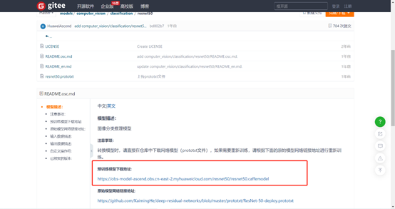 因为这是一个caffe的模型,所以我们需要去下载网络结构文件和权重文件