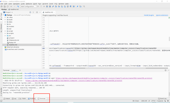然后我们使用IDE的terminal工具,下载这个文件在服务器上