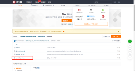 https://gitee.com/HuaweiAscend/models/tree/master/computer_vision/classification/resnet50