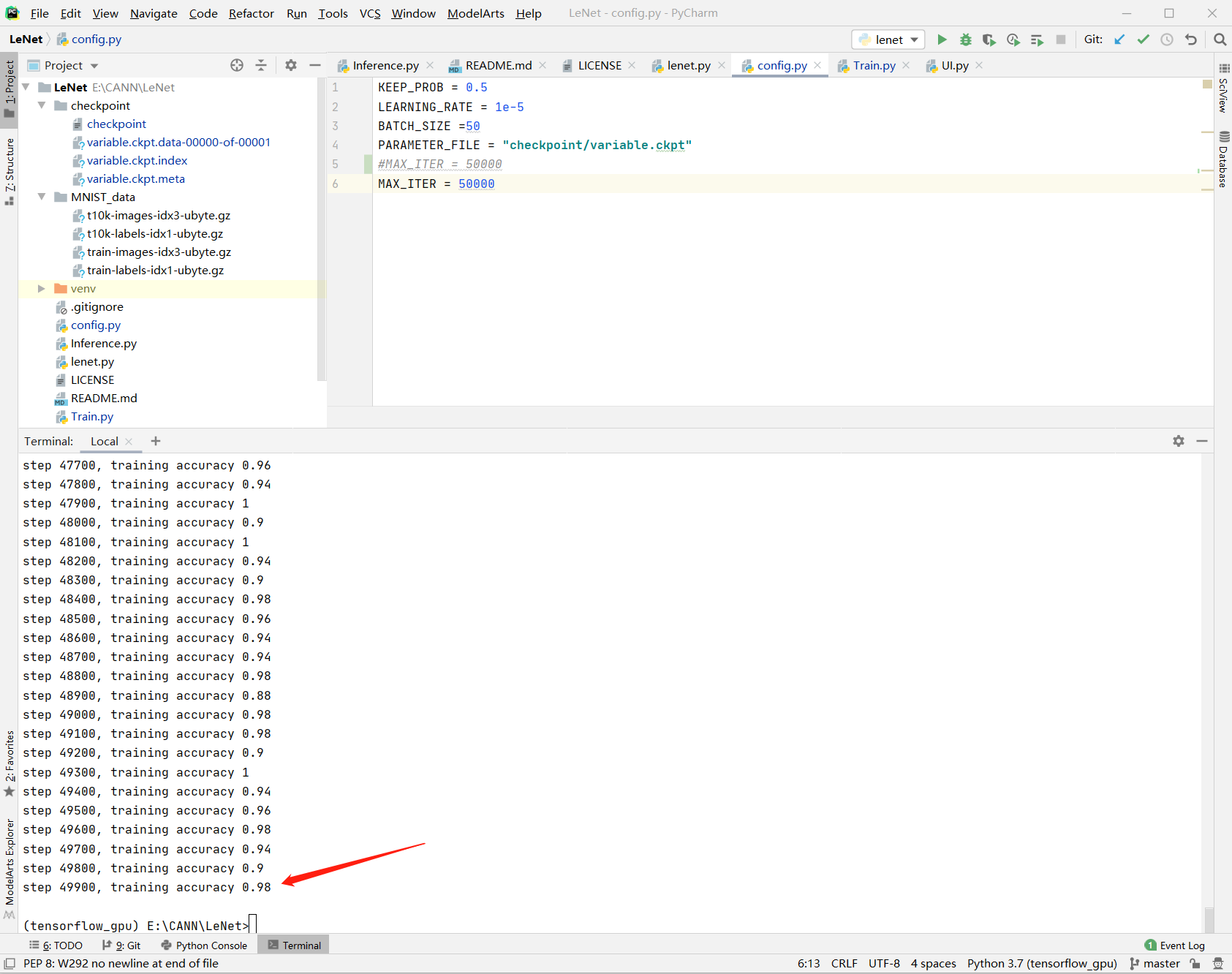 修改完毕后,,执行python Train.py