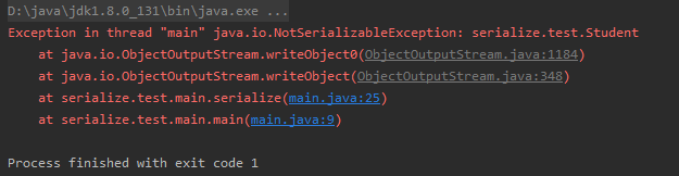 试想,如果上面在定义Student类时忘了加implements Serializable时会发生什么呢?