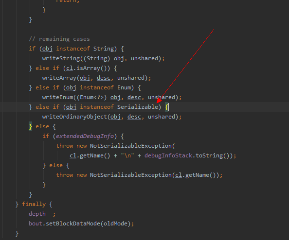 我们按照错误提示,由源码一直跟到ObjectOutputStream的writeObject0()方法底层一看,才恍然大悟: