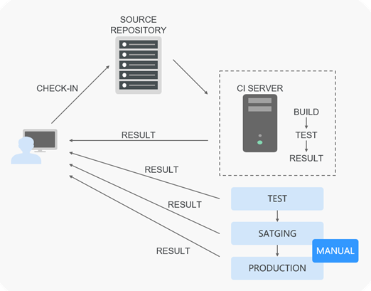 - 测试完成,由业务侧决定是否将构建软件包发布到生产环境,如果需要发布,则通过人工将软件包发布到生产环境。