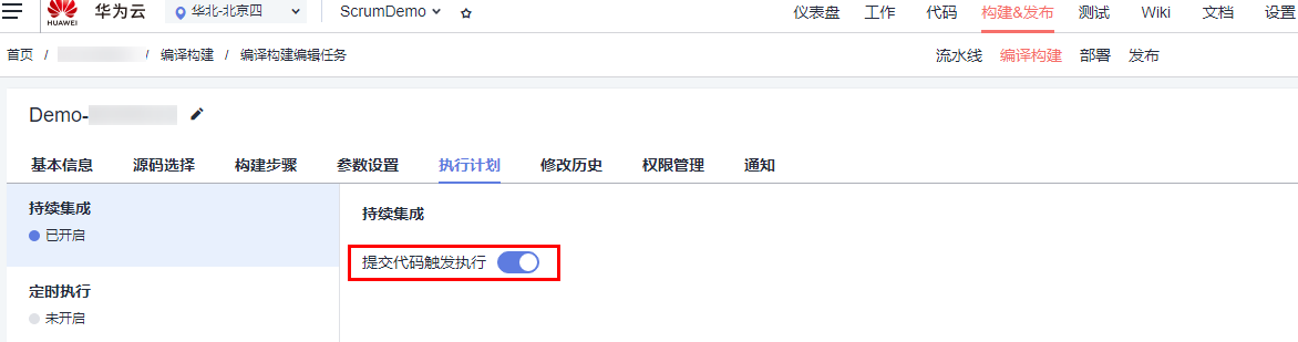 当然华为云DevCloud的编译构建功能支持持续集成:提交代码触发执行编译构建。