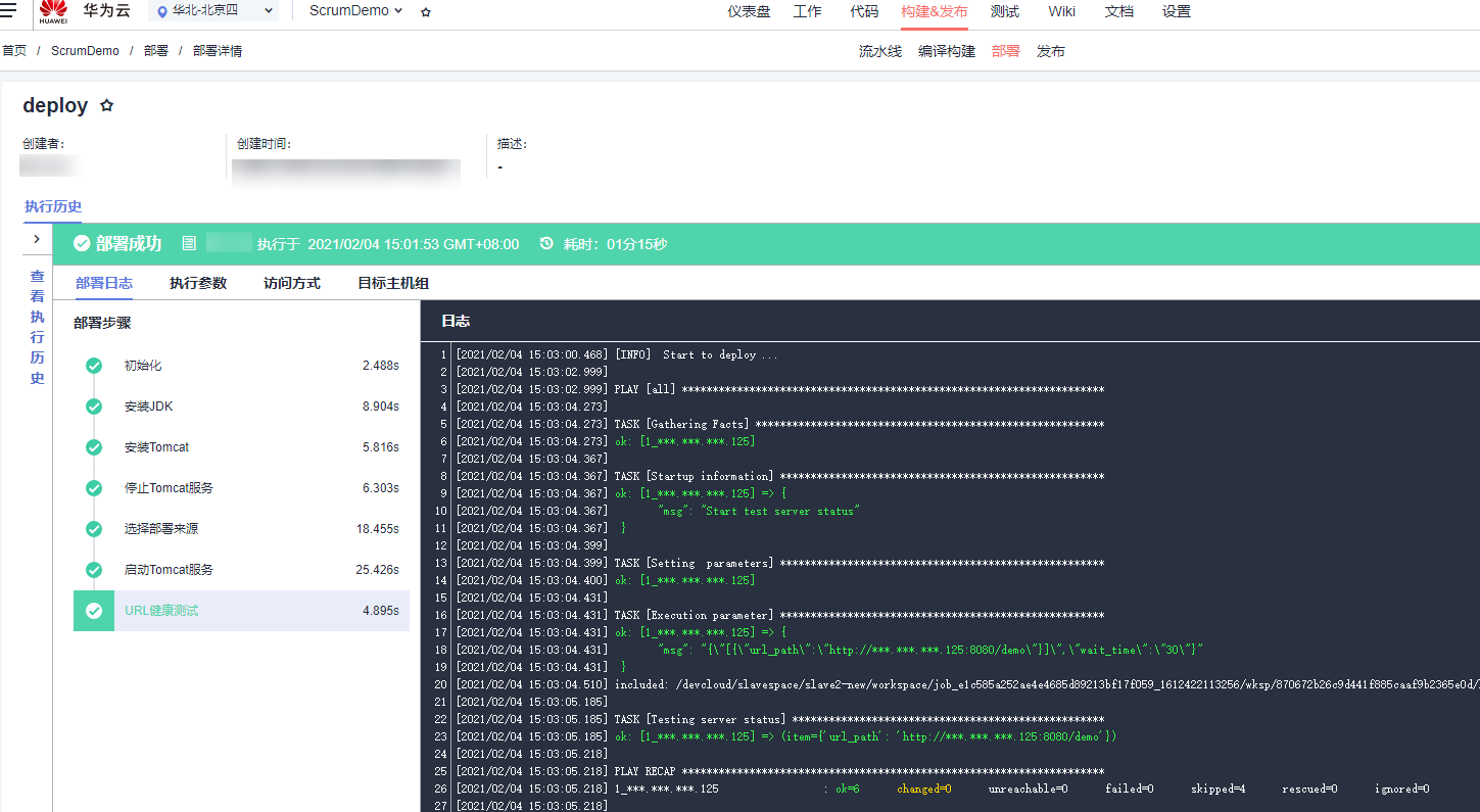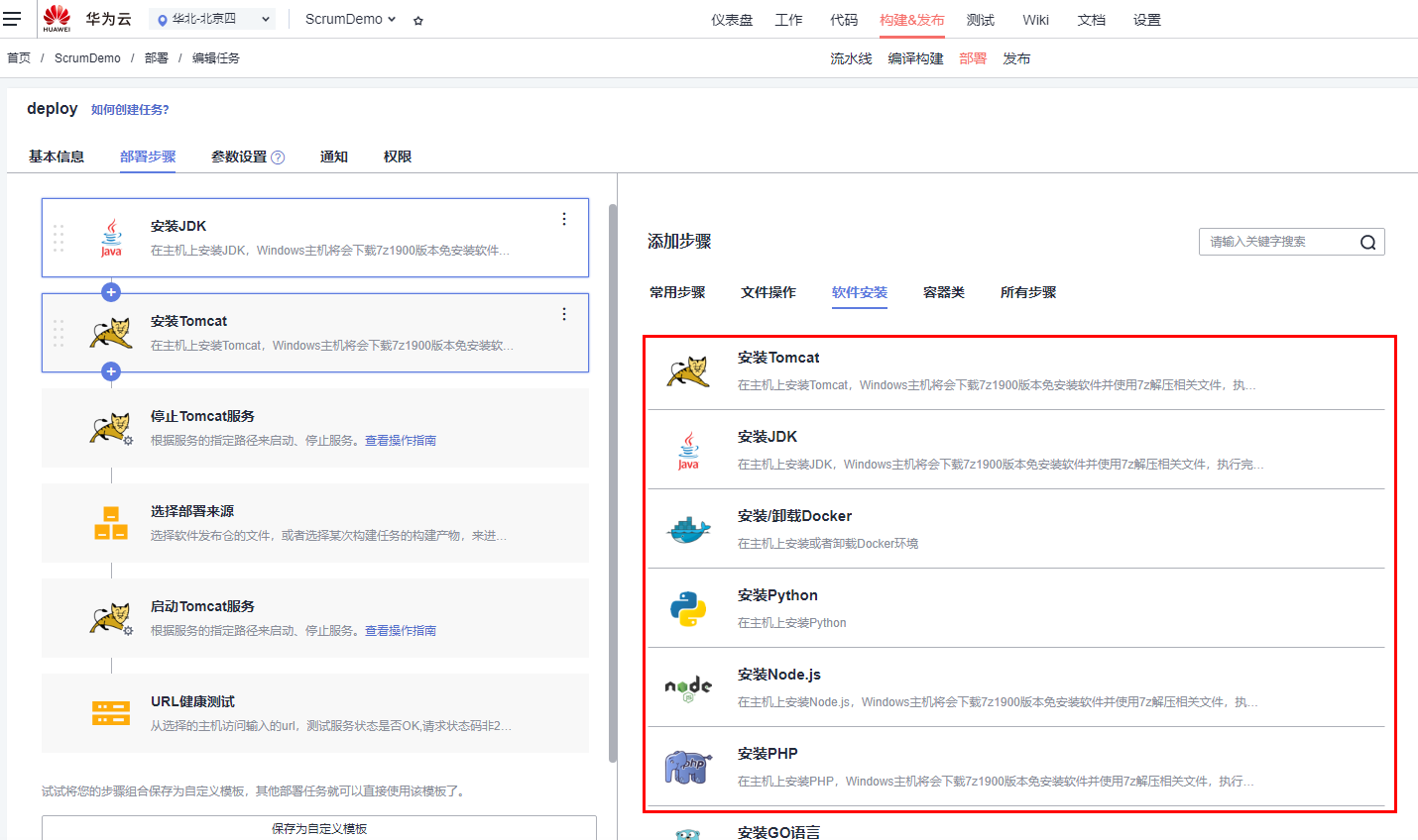 部署功能与编译构建在使用方面类似,都是根据自己的业务场景配置相应的部署任务