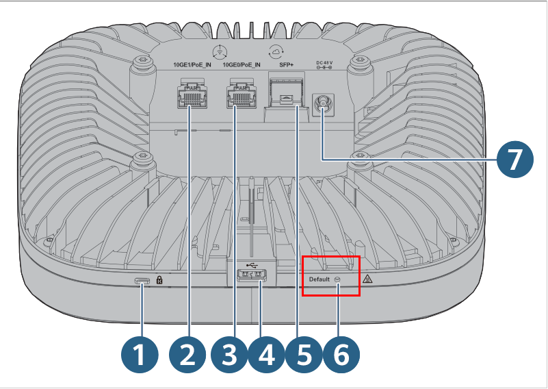 2、以AP8760-X1-PRO为例,AP侧面的USB口附近,有一个default键,找一个笔戳进去,长按5s+,触发恢复出厂