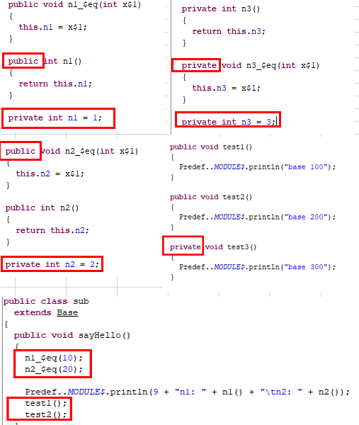 this. n2 = 20 // protected 子类访问ok -> n2_$eq(20)