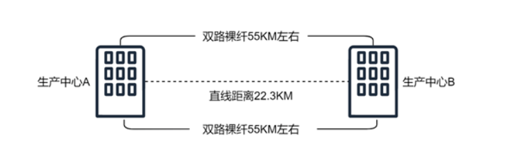 ICS选择了同城直线距离在25KM左右的两个数据中心,分别位于北京两个行政区,经测算双中心间的线路距离为55KM,这样的物理线路长度,也可以提供作为数据实时同步时的低时延基础。