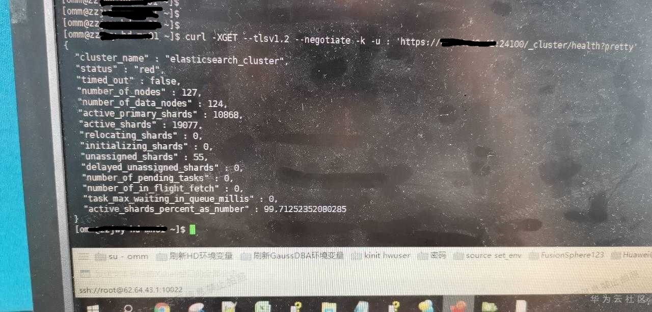 集群频繁上报“Elasticsearch实例存在down状态的主分片”告警,在后台查询ES集群健康状态: