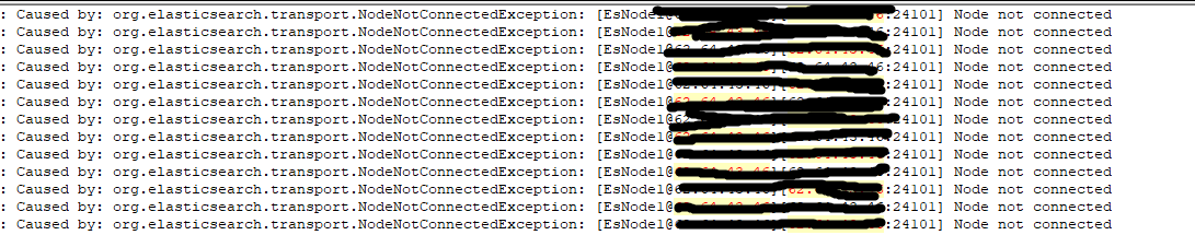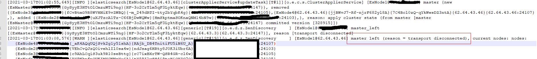 1. 收集EsMaster日志,频繁打印某一节点实例连接异常报错:Node not connected和transport disconnected