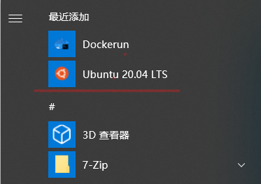 安装完成后,点开始菜单,就可以看到 Ubuntu 操作系统打开的图标: