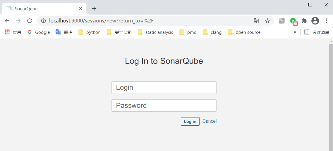 上面命令执行完后,就在本地安装好了一个SonarQube,可以通过访问 http://localhost:9000 来进行访问: