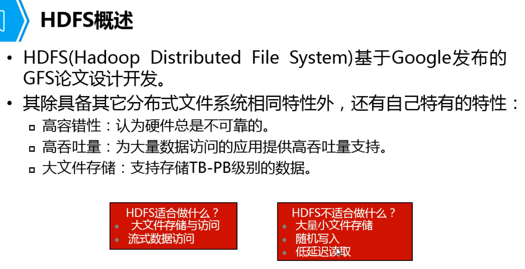 HDFS是 Hadoop技术框架中的分布式文件系统,对部署在多台独立物理机器上的文件进行管理。可用于多种场景,如