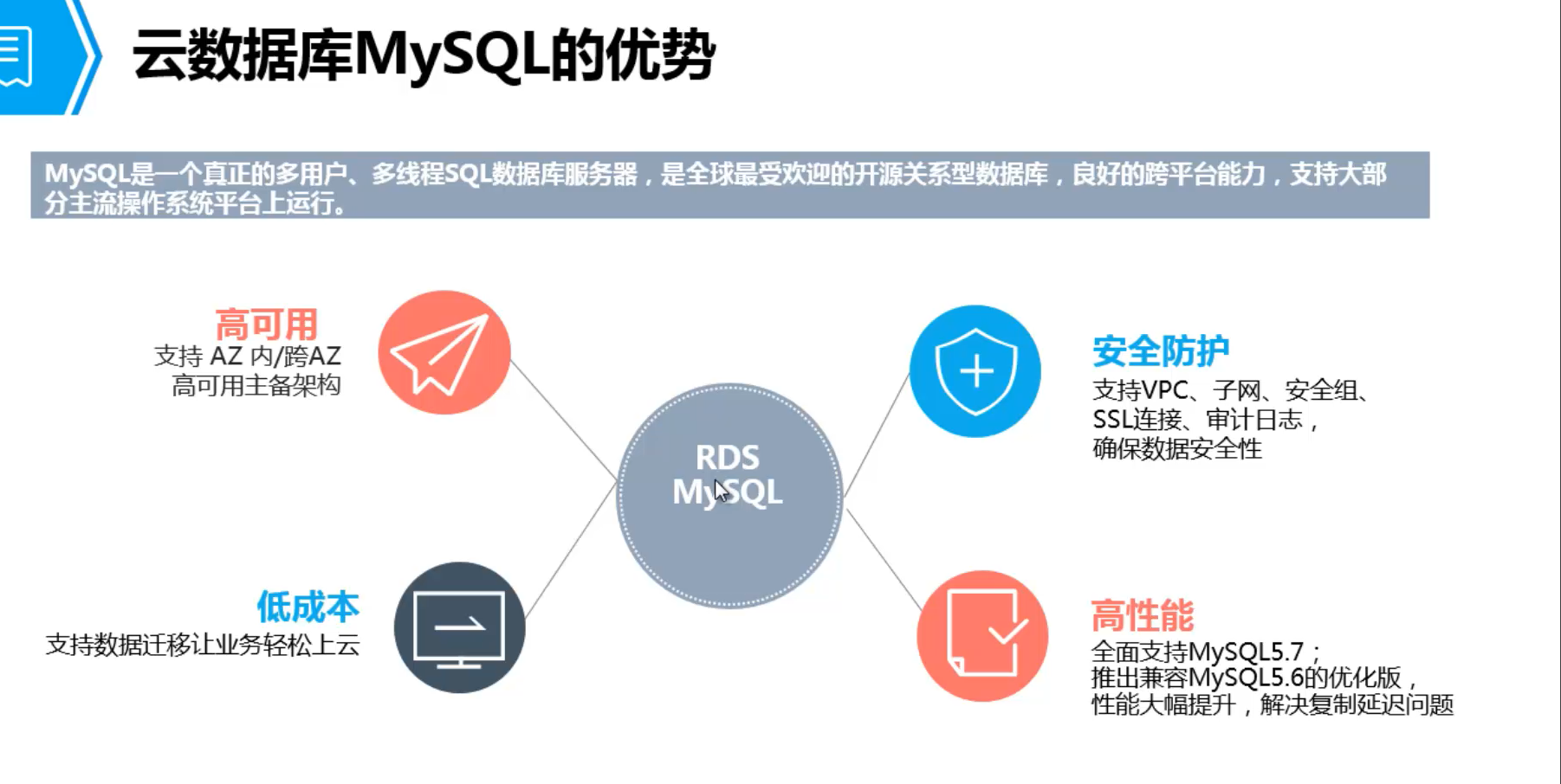 My SQL是目前最受欢迎的开源数据库之一,其性能卓越,搭配LAMP( Linux+ Apache+ MySQL+PerJ/PHP/ Python),成为WEB开发的高效解决方案。云数据库拥有即开即用、稳定可靠、安全运行、弹性伸缩、轻松管理、经济实用等特点。