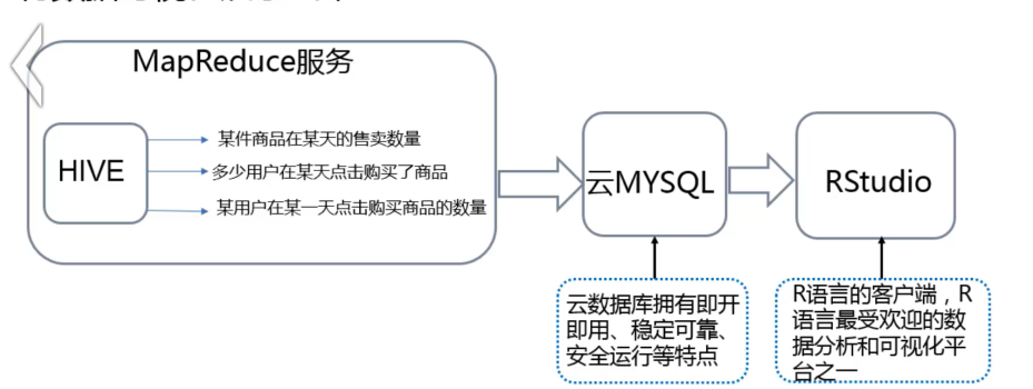 华为云服务涵盖功能繁多,功能划分细致,涉及范围较广,本次网站消费者行为分析思路是通过 MapReduce服务进行数据分析,分析后的数据安全存储至云 MySQL,最后通过R语言进行数据可视化