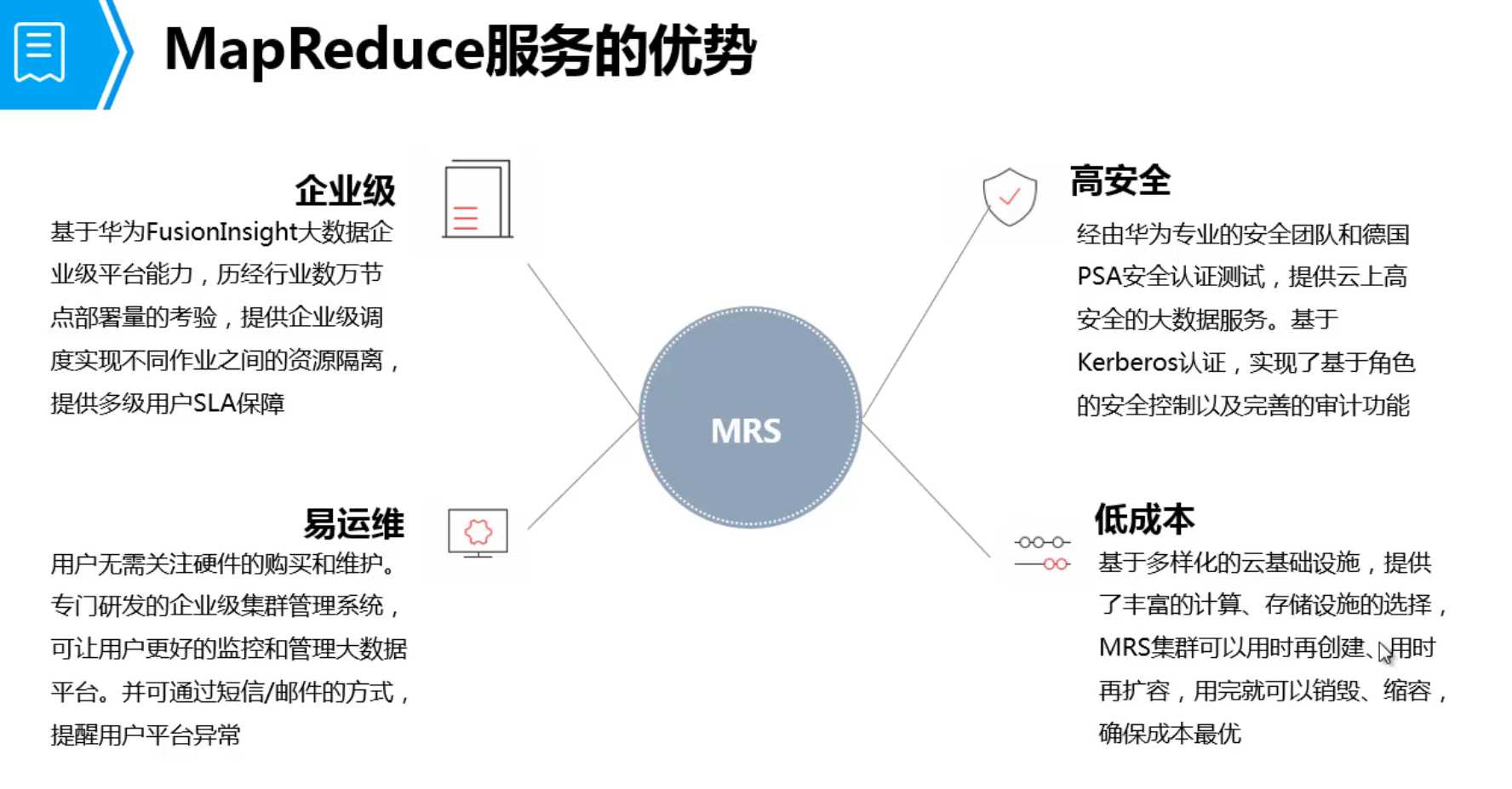 MRS大数据 MapReduce服务(MRS),MRS是一个在华为云上部署和管理 Hadoop系统的服务,一键即可部署 Hadoop集群。