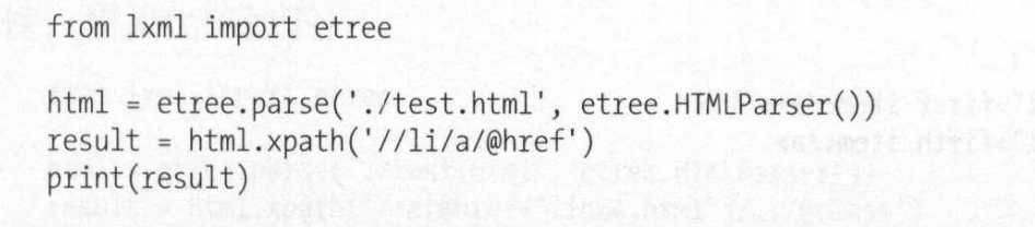 获取li节点下所有a节点的href属性值,它是以列表的形式返回的。