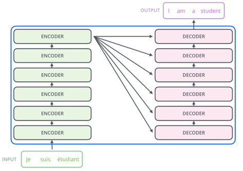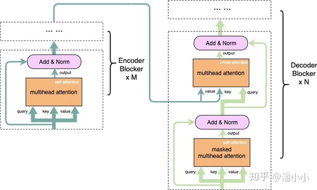 图一左是经典的transformer经典的结构图,图一右则是使用transformer进行机器翻译的一个架构图