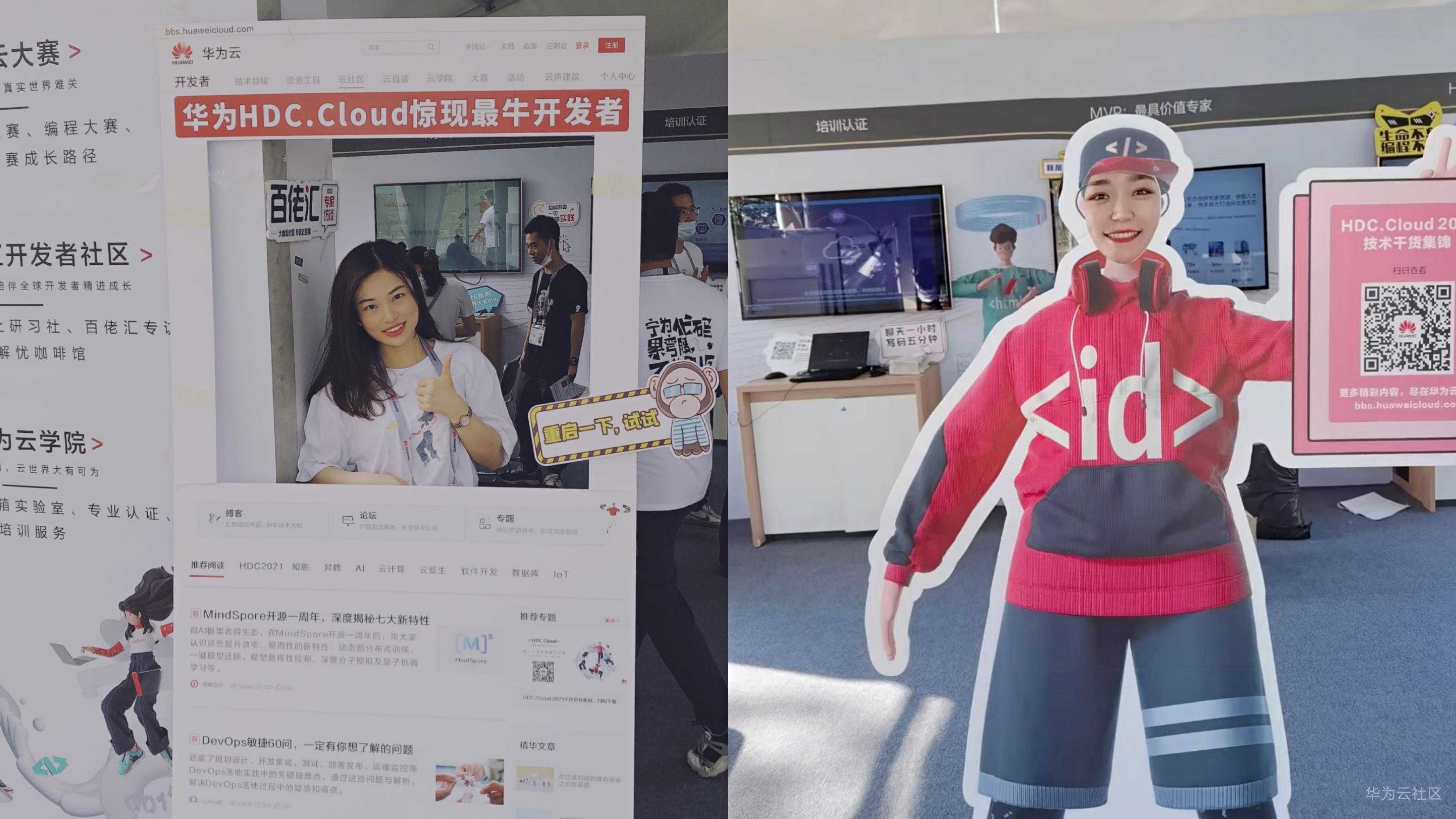 路过的学生美女开发者们,看到开发者有趣的立牌,也不禁合影打卡。参加【我和HDC2021有个约会】活动,逛展拍照、写游记,华为音箱和限量周边拿到手软哦!